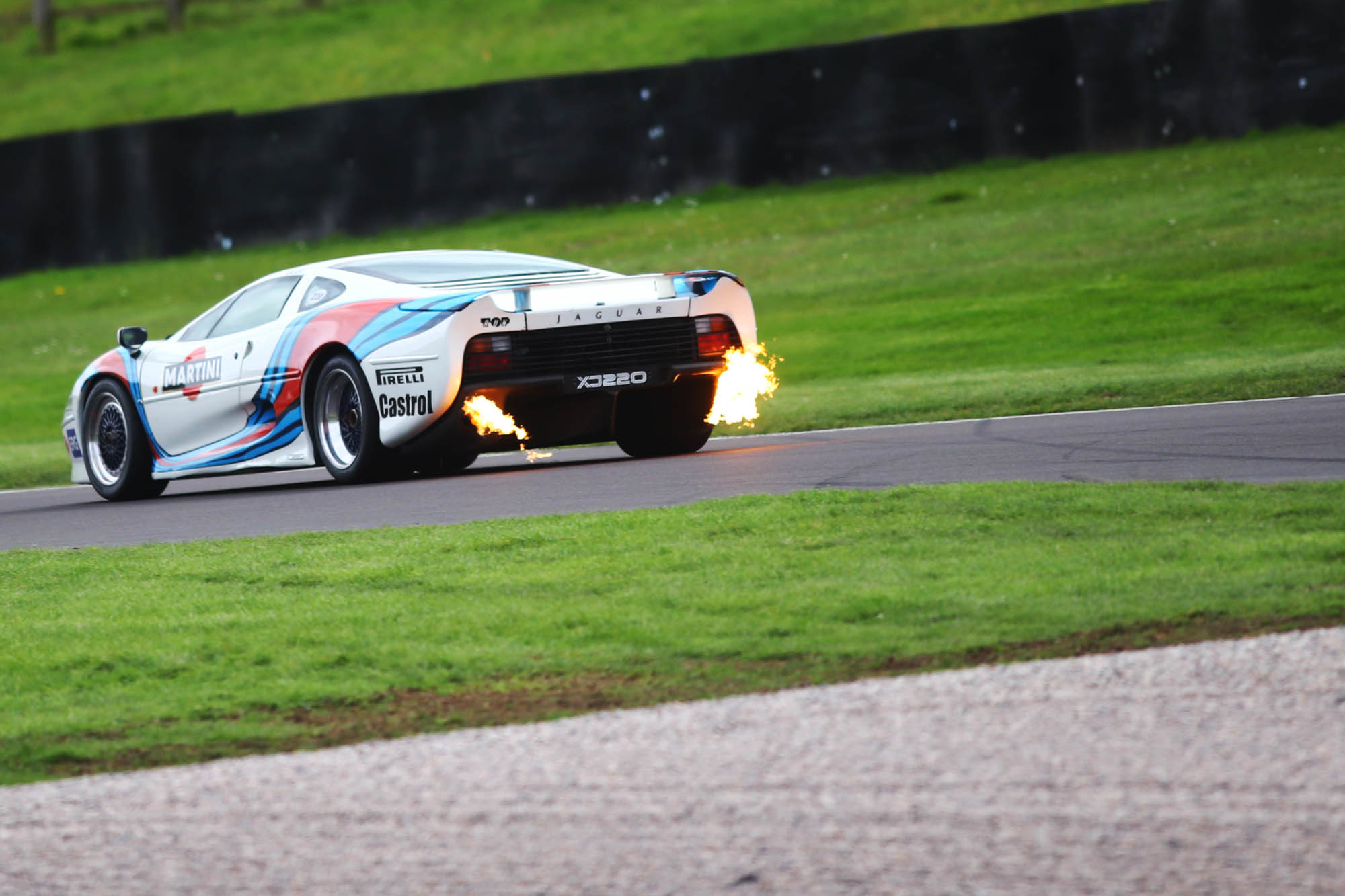 Justin Law in the Martini-liveried Jaguar XJ220 looked every bit as dramatic as you’d hope, and the Ferrari 365 GTB/4 Daytona Competizione was achingly cool and sounded incredible at full chat, always with a dab of opposite lock in true ‘70s fashion — raw, loud, and completely intoxicating. If there was an award for best sounding car of the day, it would have been firmly in contention.